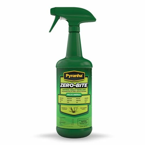Pyranha® Zero-Bite Natural Insect Repellent is a RTU (ready-to-use) fly spray the way Mother Nature intended. The goodness of natural products such as geraniol, clove and peppermint combined to bring you mother nature?s powerful natural fly fighter. Discover this natural alternative to traditional fly sprays where you buy fly spray. The natural oils are suspended in more than 90 percent water, so it is neither oily nor greasy! A safe, non-toxic alternative to traditional fly sprays and wipe. Great natural scent. Safe to use on dogs, cats and other small animals too!