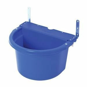 The Little Giant20 quart fence feeder blue high-impact polyethylene plastic that will stand up to tough farm use. Feeders are portable and easy to install and clean. Complete with heavy gauge metal brackets for over-the-fence or on-the-wall installation.