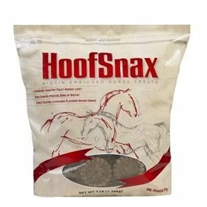 Manna Pro Hoofsnax are premium, healthy treats horses love! A new line of premium horse treats that are a healthier alternative to other treats on the market. Oven-fresh, cinnamon flavored baked cookies. HoofSnax – Biotin enriched treats-7 cookies provides the recommended daily dose of biotin, for strong, healthy hooves. Made with Stabilized Rice Bran.