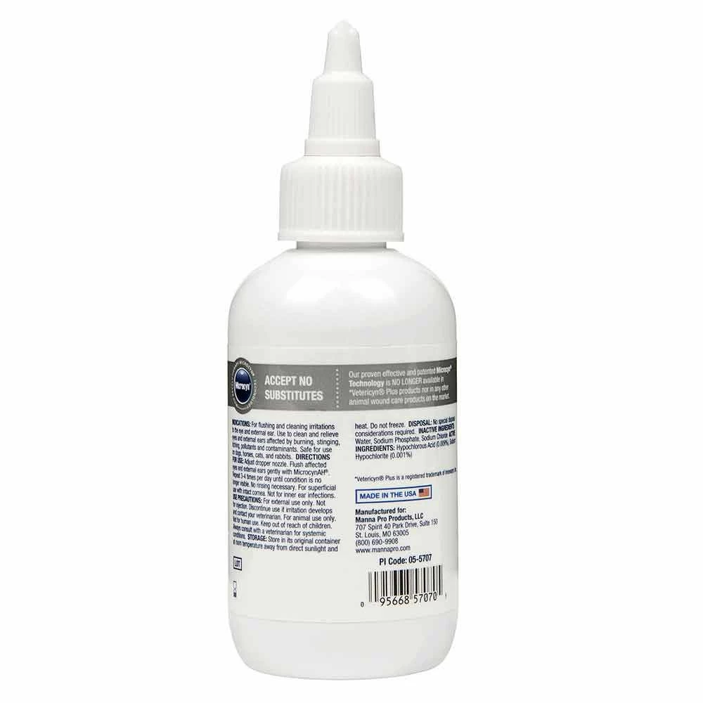 Manna Pro® MicrocynAH® Eye & Ear Wash flushes and clears irritations of the eyes and external ears of animals. Powered by Microcyn® Technology, a trusted original formula that has treated more than 10 million human and animal patients. it is veterinarian recommended and safe when used as directed. Contains no alcohol, steroid or antibiotics. #html-body [data-pb-style="6216044B646EF"]{justify-content: flex-start; display: flex; flex-direction: column; background-position: left top; background-size: cover; background-repeat: no-repeat; background-attachment: scroll; border-style: none; border-width: 1px; border-radius: 0px; margin: 0px 0px 10px; padding: 10px;}#html-body [data-pb-style="6216044B64716"]{border-style: none; border-width: 1px; border-radius: 0px; margin: 0px; padding: 0px;}