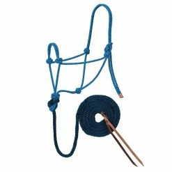 Weaver Leather Diamond Braid Rope Horse Halter is hand-knotted from a continuous piece of 3/8 in. poly rope with a double noseband and crown strap. The hollow braid spun poly lead measures 1/2 in. x 10 ft.